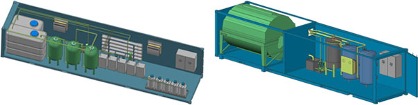 The water treatment systems are embedded in the ISO containers [10ft., 20ft. and 40ft.].