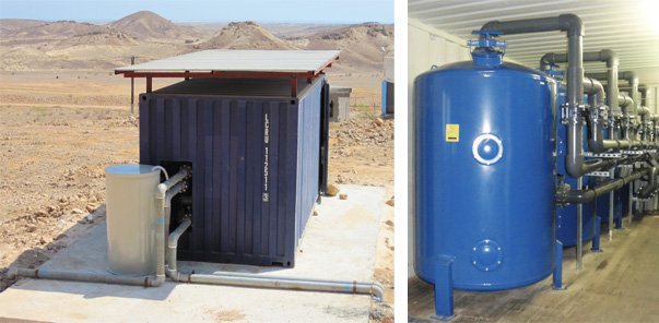 Odfiltrování pevných částic ze surové vody osmi automatickými hydraulickými filtry AF-808LOPR, paralelně zapojenými do potrubí, následná instalace do kontejneru |